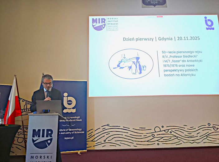 Dwudniowe uroczystości dotyczące półwiecza tego antarktycznego rejsu, rozpoczęły się 20 listopada 2025 roku w Morskim Instytucie Robackim w Gdyni. Następnego dnia, 21 listopada 2025 roku, będą one kontynuowane w Instytucie Oceanologii Polskiej Akademii Nauk w Sopocie. Mieliśmy przyjemność uczestniczyć w inauguracji tych uroczystości, w Morskim Instytucie Rybackim rozpoczętych konferencją naukową pt. „Pół wieku polskich badań w służbie nauki – ku przyszłości oceanów i klimatów polarnych. 50-lecie pierwszego rejsu r/v Profesor Siedlecki i m/t Tazar do Antarktyki 1975/1976 oraz nowe perspektywy polskich badań na Atlantyku”.
