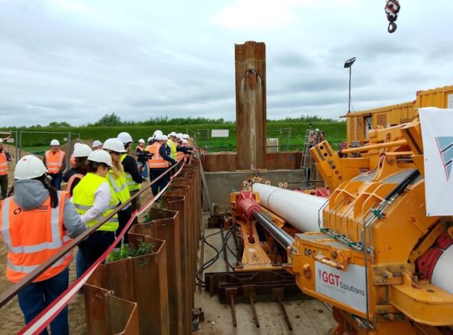 Na zdjęciu: wykonywanie przewiertu pod Wisłą z powiatu Kwidzyn na terenie Powiśla – Pomezanii do powiatu Tczew na Kociewiu, w maju 2025 roku. Fot. Kazimierz Netka.
