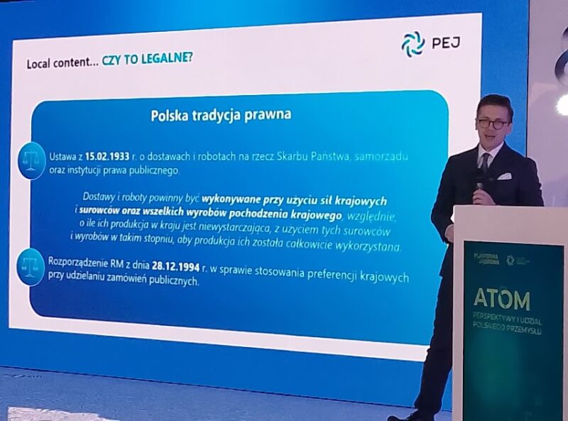 Zamieszczamy też kilka slajdów. Local content to bowiem pewien sposób myślenia o inwestycji, to inaczej preferencje dla przedsiębiorstw krajowych. Czy to jest zgodne z normami prawnymi, w tym z unijnymi?