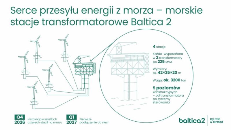 – Morska stacja elektroenergetyczna to tzw. serce farmy wiatrowej. Te olbrzymie konstrukcje mają kluczowe znaczenie dla zapewnienia wydajności morskiej energii wiatrowej, ponieważ umożliwiają przesył energii z turbin, które dla projektu Baltica 2 będą umiejscowione około 40 km od brzegu morza. Instalacja pierwszego transformatora to symboliczny moment pokazujący, że produkcja kolejnych ważnych komponentów dla największej morskiej farmy wiatrowej w Polsce przebiega zgodnie z harmonogramem i najwyższymi standardami bezpieczeństwa – powiedział Ulrik Lange, dyrektor zarządzający projektu Baltica 2 w Ørsted.