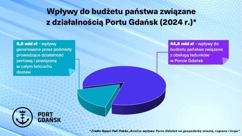 Według analizy PwC Polska, wpływy z podatków od ładunków obsługiwanych w Porcie Gdańsk stanowią ważne źródło dochodów państwa. Tylko w 2024 roku wyniosły one 44,6 mld zł, czyli 6,5 proc. całkowitych wpływów do budżetu państwa. Dla zobrazowania skali – kwota 44,6 mld zł to równowartość środków pozwalających na budowę około 100 tys. mieszkań komunalnych. To także ponad 70 proc. rocznego budżetu programu Rodzina 800+, którego koszt wynosi około 63 mld zł.