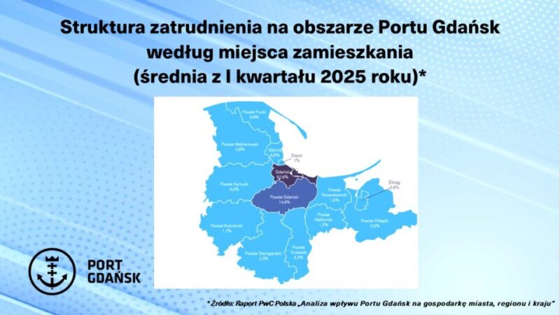 Z najnowszego raportu opracowanego przez PwC Polska wynika też, że w Porcie Gdańsk zatrudnienie w podmiotach zajmujących się działalnością stricte portową i operacyjną znajduje około 16 tys. osób. Najwięcej, bo ponad połowa zatrudnionych, mieszka w Gdańsku. Przedsiębiorcy działający w porcie zapewniają też miejsca pracy mieszkańcom okolicznych powiatów – głównie gdańskiego i kartuskiego, ale także z ościennego województwa warmińsko-mazurskiego.