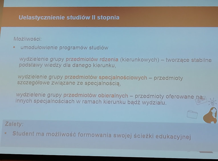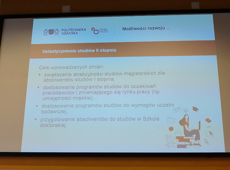 Jak państwo wiecie, jesteśmy uczelnią badawczą jedną z 10 w kraju, w związku z tym przedmioty wiążą się z rozwijaniem uczelni jako uczelni badawczej. Będziecie włączani, będziecie mieli możliwość włączenia się w toczące się projekty badawcze, finansowane z różnych źródeł. Być może część z was, po ukończeniu studiów II stopnia podejmie się udziału w szkole doktorskiej.