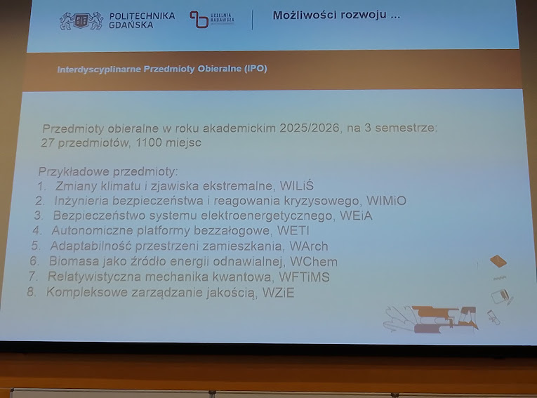 Nowością jest natomiast możliwość realizacji indywidualnych studiów badawczych – poinformował prof. Mariusz Kaczmarek – prorektor Politechniki Gdańskiej.