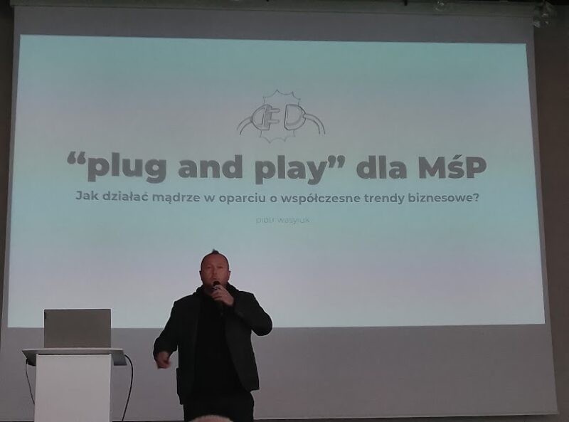 „Plug and Play dla MŚP. Jak rozwijać się mądrze w oparciu o współczesne trendy biznesowe?“ – Piotr Wasyluk – trendwatcher, specjalista i praktyk w zakresie projektowania usług oraz projektowania z wykorzystaniem trendów; moderator design thinking: