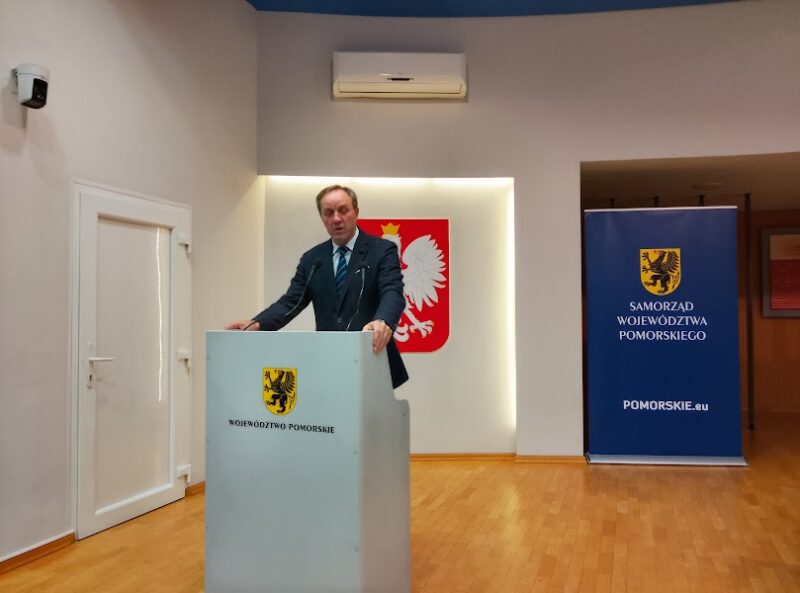 w celu poprawy dostępności transportowej mieszkańców województwa pomorskiego do rdzenia aglomeracji trójmiejskiej” w ramach Krajowego Planu Odbudowy i Zwiększania Odporności wraz z debatą na temat wyzwań taborowych w województwie pomorskim pt. „Pomorski tabor kolejowy – teraźniejszość i wyzwania przyszłości”.