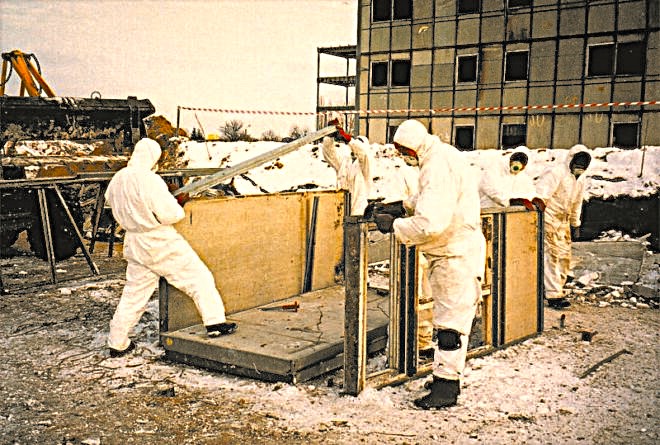 Na zdjęciu: demontaż budynku z azbestem w Gdańsku. Fot. Kazimierz Netka.