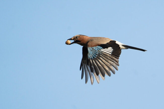 Najprostsze wyjaśnienie to… żołędzie. To właśnie nimi sójki żywią się jesienią i zimą, zakopując je w ziemi jako zapasy. Gdy plon dębów jest wyjątkowo słaby, ptaki muszą szukać nowych żerowisk. Wtedy wyruszają w drogę, nierzadko bardzo daleką – część osobników potrafi dotrzeć aż za Bałtyk, a nawet w głąb Skandynawii.