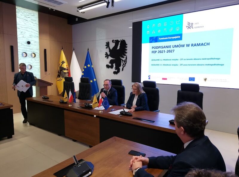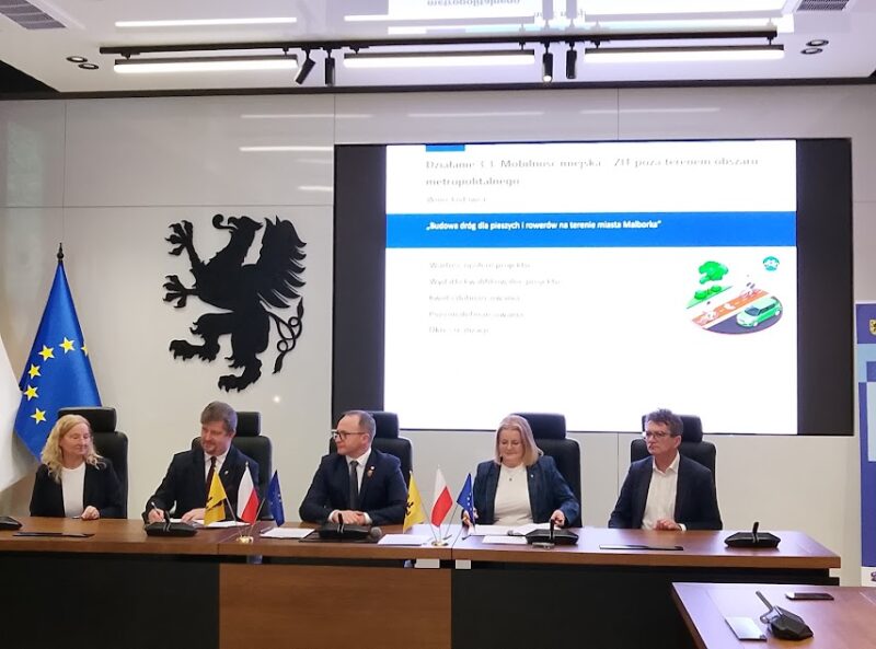 O najnowszych przedsięwzięciach w tym zakresie mówiono w poniedziałek, 1 grudnia, w Urzędzie Marszałkowskim Województwa Pomorskiego (UMWP). Konferencja była podzielona na dwa etapy. Pierwszy dotyczył przekazania samorządom pieniędzy na mobilność – podpisano cztery umowy w ramach Zintegrowanych Inwestycji Terytorialnych, na rozwój mobilności miejskiej. Umowy te dotyczą inwestycji w Pruszczu Gdańskim, w Malborku, w gminie Starogard Gdański. Konferencję dotycząca podpisania tych umów prowadzili Michał Piotrowski – rzecznik prasowy, zastępca dyrektora Departamentu Kancelaria Marszałka Województwa Urzędu Marszałkowskiego Województwa Pomorskiego i Jan Szymański – dyrektor Departamentu Programów Regionalnych Urzędu Marszałkowskiego Województwa Pomorskiego.