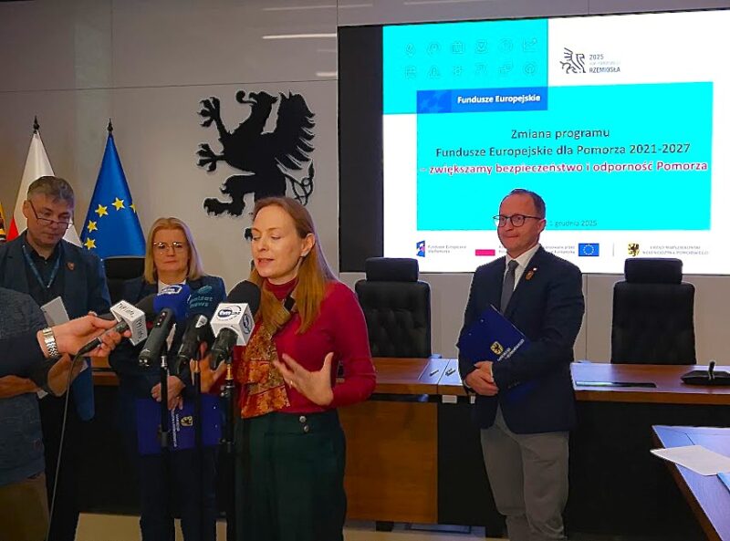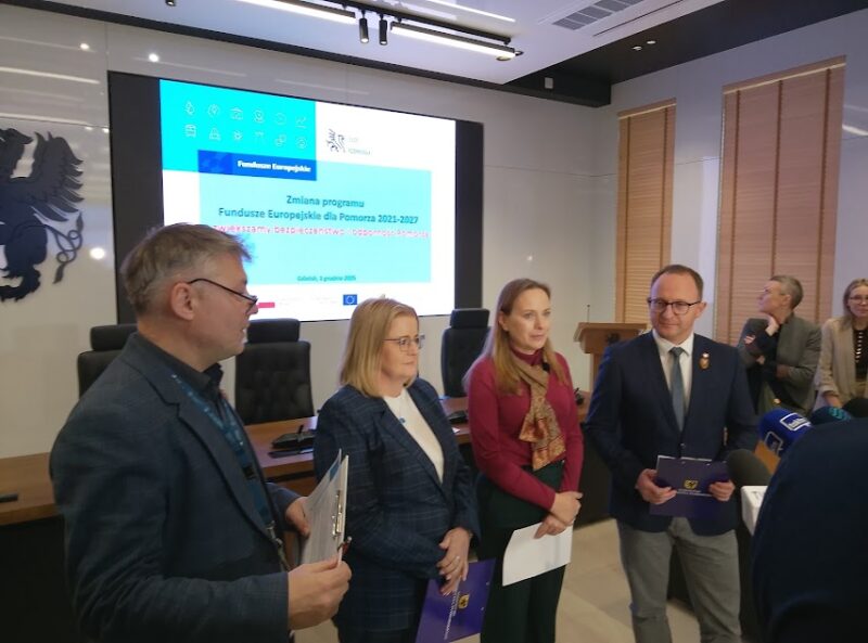 Podczas briefingu prasowego 1 grudnia 2027 r. w Urzędzie Marszałkowskim Województwa Pomorskiego z dziennikarzami spotkali się przedstawiciele Zarządu Województwa Pomorskiego – Marcin Skwierawski i Agnieszka Baranowska oraz minister funduszy i polityki regionalnej Katarzyna Pełczyńska-Nałęcz.