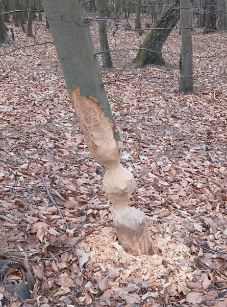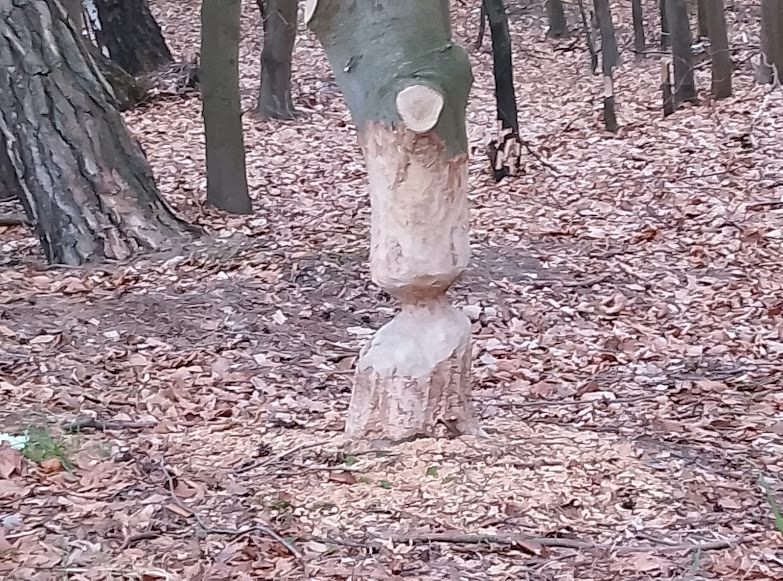 Po drodze na plac budowy FSRU mieliśmy przyjemność obejrzeć unikatowe rzeźby, wykonane przez bobry. To „żywe” rzeźby (na zdjęciu powyżej), bo drzewa, z których je wykonano, jeszcze rosną ale pewnie wkrótce padną, gdyż bobry (znające się na inżynierii lądowo – wodnej, czyli na drążeniu mikrotuneli również), zapewne zechcą dokończyć swe dzieła.