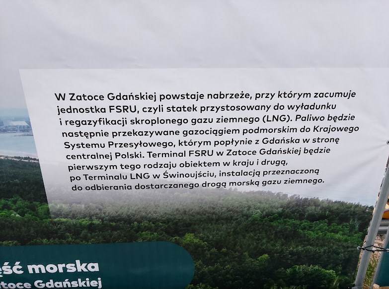 Budowa gazociągu i pływającego gazoportu o nazwie: FSRU, to nie tylko miejsca pracy; korzyści dla województwa pomorskiego jest o wiele więcej. Na przykład to dobra okazja do zdobywania wiedzy, do poznawania tego, co mamy w ziemi. Ponadto, dochód mają właściciele gruntów na trasie budowy gazociągu, a dla samorządów oznacza wpływy z podatków przez wiele, wiele dziesiątek lat. Nie mówiąc już o tym, że poprawi się nasze bezpieczeństwo energetyczne, bo pewniejsze będą dostawy paliwa – gazu, dostarczanego do FSRU w postaci LNG – Liquefied Natural Gas – płynnego gazu ziemnego, który w FSRU będzie regazyfikowany i wysyłany gazociągiem w głąb Polski.