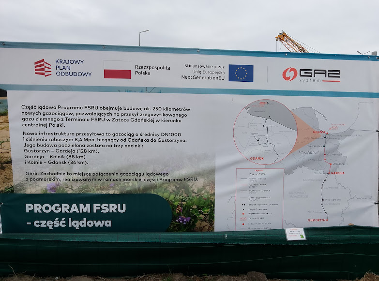 Niemal przez jedną trzecią Polski, z południa na północ, aż na Zatokę Gdańską kopany jest rów, a w nim układane rury. To jedno z najdłuższych ziemnych przedsięwzięć w Polsce. Tak powstaje gazociąg, którym importowane paliwo, po rozładunku w pływającym porcie, będzie przesyłane do odbiorców na lądzie.