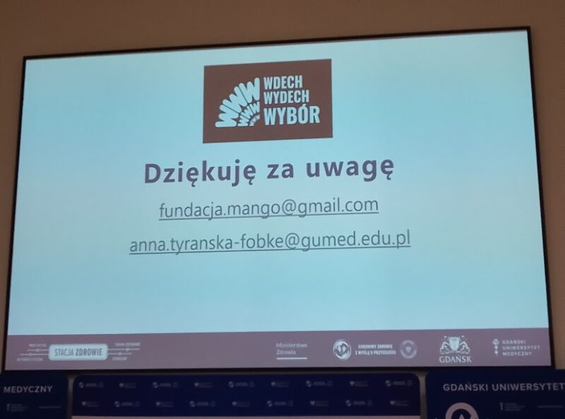 – WWW: wdech-wydech-wybór. Szkoły wolne od nikotyny i energetyków – kampania profilaktyczno-edukacyjna skierowana do szkół ponadpodstawowych w Gdańsku – Anna Tyrańska-Fobke, Fundacja Mango, GUMed