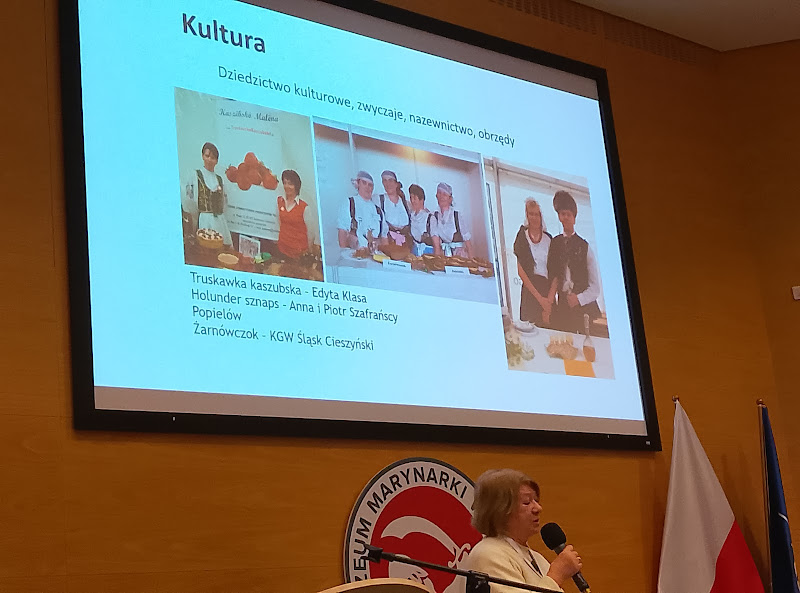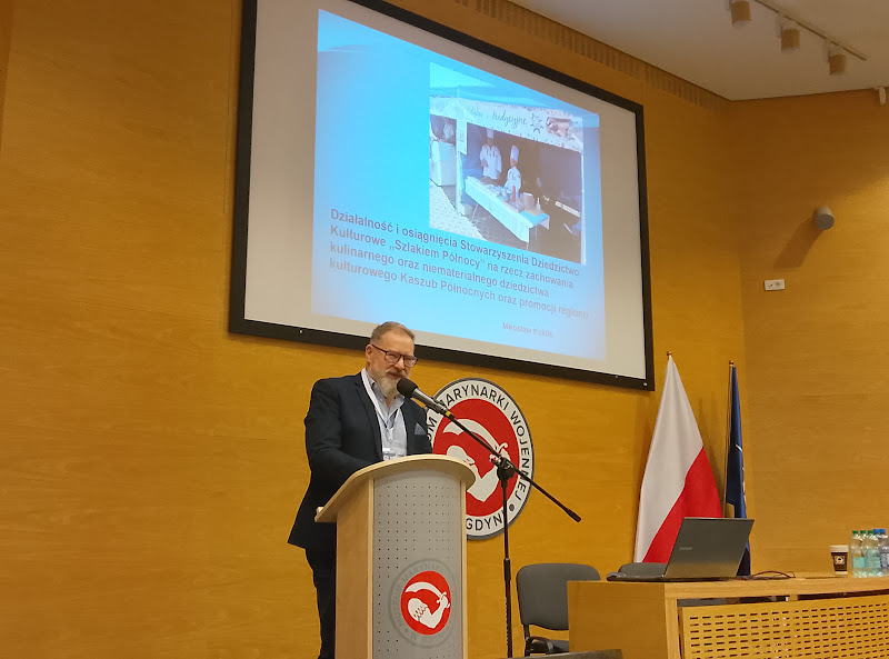 Pierwszym prelegentem był dr Mirosław Kuklik – dyrektor Muzeum Północnokaszubskiego we Władysławowie. Tytuł wykładu: „Działalność i osiągnięcia Stowarzyszenia Dziedzictwo Kulturowe Szlakiem Północy na rzecz zachowania kulinarnego oraz niematerialnego dziedzictwa kulturowego Kaszub Północnych i promocji regionu”. Oto niektóre slajdy: